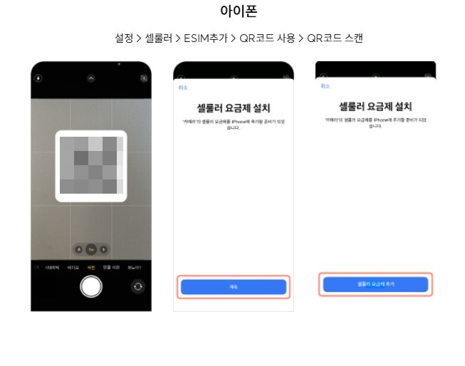 6. 새로 전달받은 esim QR 스마트폰으로 인식
